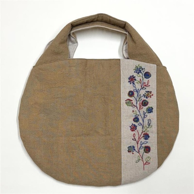 リネンに萌友オリジナルの柄を刺し子の糸を使い、一針一針丁寧に刺繍したものと草木染めしたリネンを合わせ、中綿を全面と持ち手に入れており優しい丸みのあるバッグです。 刺繍がとてもきれいで 品があり使い易い大きさです。 スカートでおしゃれに、パンツにTシャツでカジュアルといろんなコーディネートで楽しんで頂けます。 *コーヒー染め コーヒーで染めた布は柔らかなブラウン色になります。染める素材によって濃い色…ベージュのような薄い色に仕上がったりとアンティークでナチュラルな風合いが楽しんでいただけます。 *サイズ 縦30㎝ 横 37㎝ 持ち手長 32 ㎝ マチなし *仕様 内ポケット マグネットボタン *素材 麻 100% 内側 綿麻