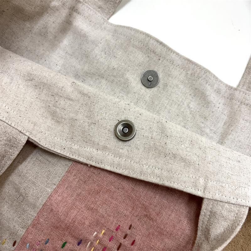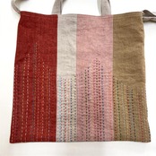 草木染めや刺し子布・麻布を組み合わせたパッチワークバッグ。