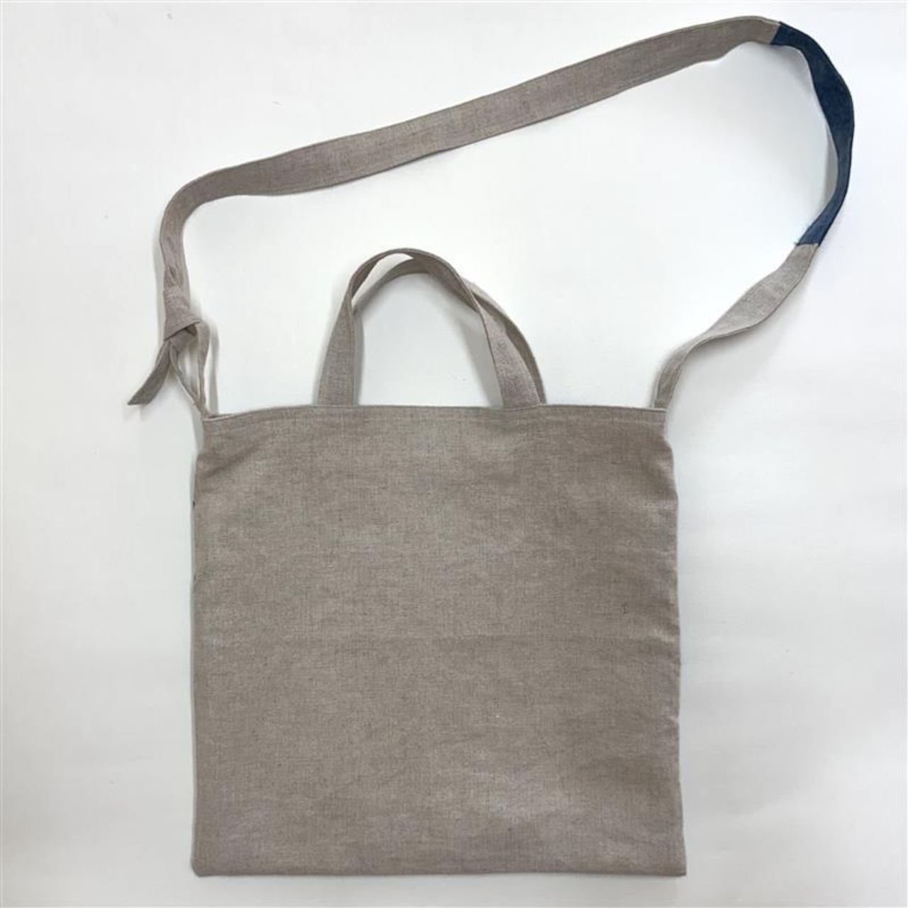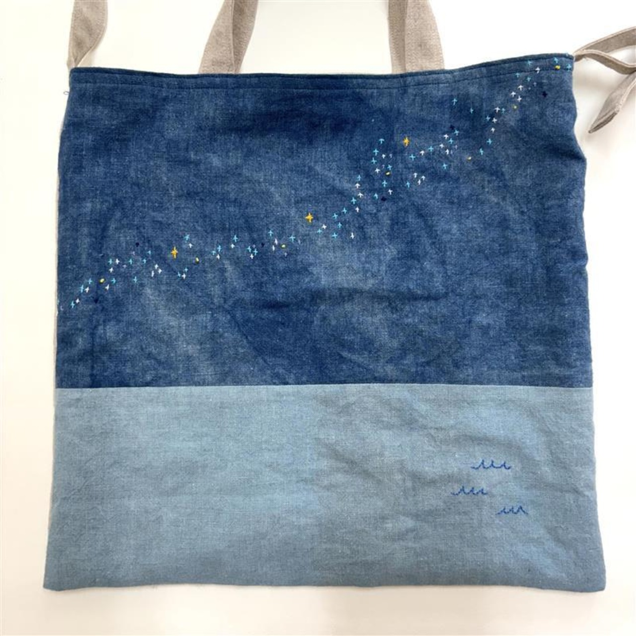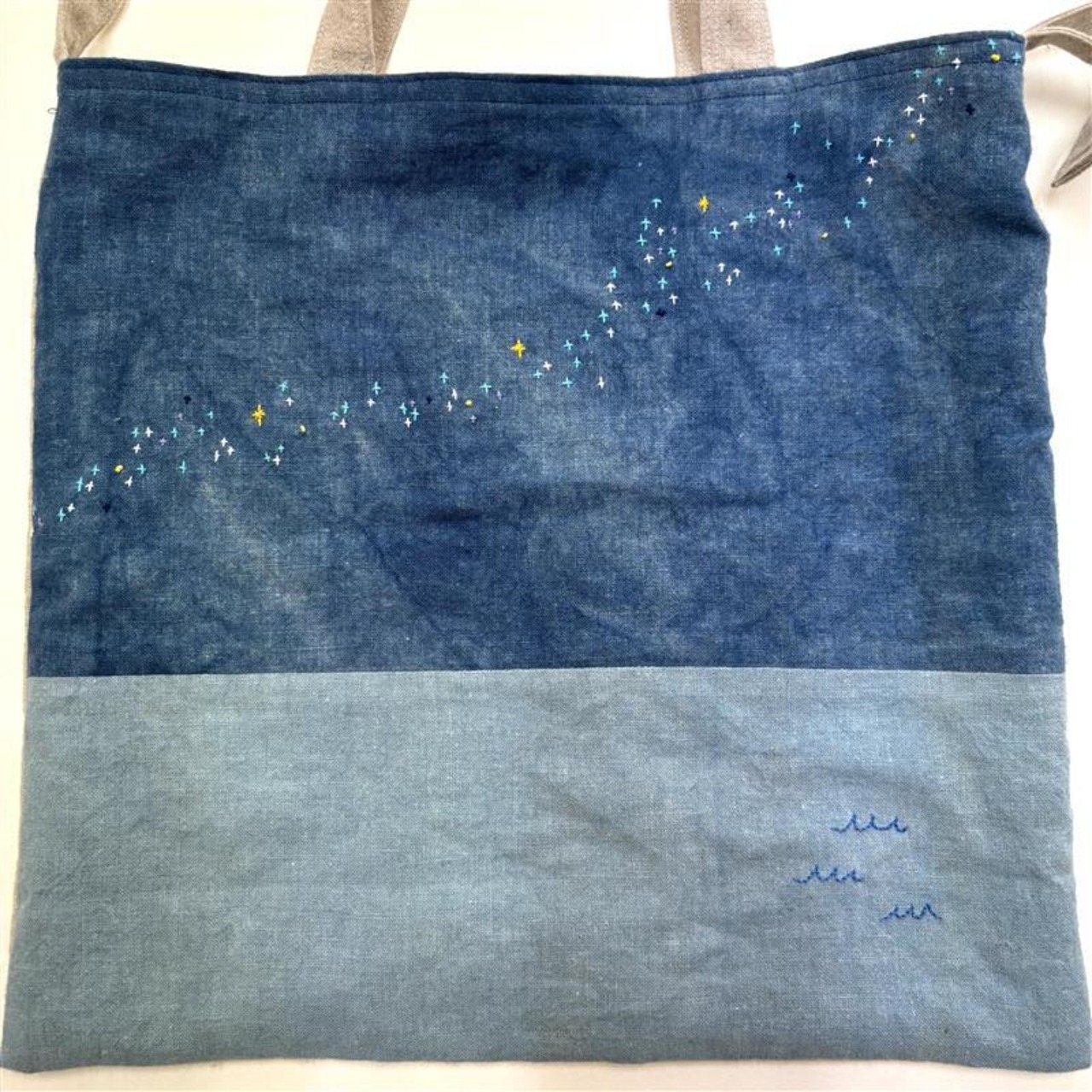 藍染・刺し子布・麻布を組み合わせたパッチワークバッグ。